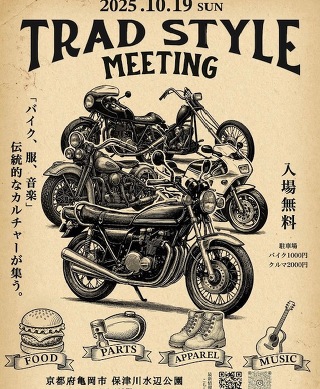 10/19(日)京都府亀岡にて開催される『TRAD STYLE MEETING』に出店致します。