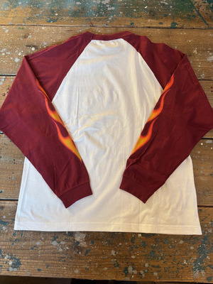 レトロ感のあるフレイムスをラグランスリーブの2色切り替えのロンTにプリントしました。