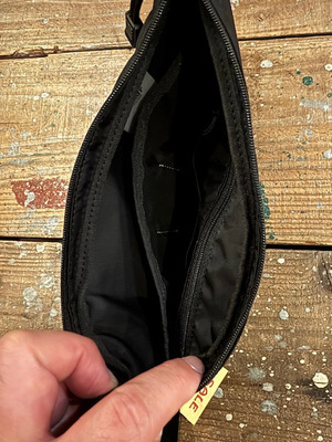内側の仕切り内側にはファスナータイプのポケット、その前面にはカード入れが備え付けてあり、ウォレットとしての機能も合わせ持った優れ物です。